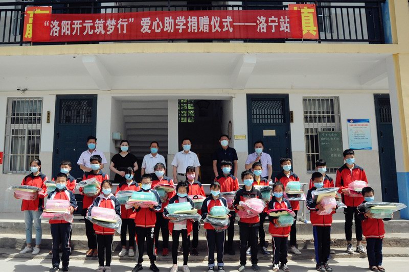 2020年5月27-29日,“洛陽開元筑夢行”愛心捐助活動(dòng)分別在欒川秋扒鄉(xiāng)中心小學(xué)、洛寧故縣中心學(xué)校、宜陽蓮莊鎮(zhèn)政府舉行,共資助了61名貧困學(xué)生,累計(jì)捐款捐物近4萬元;
