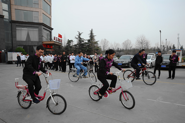 3月24日下午迪尼斯開元店在停車場(chǎng)舉行了一場(chǎng)面目一新的春季運(yùn)動(dòng)會(huì)。此次運(yùn)動(dòng)會(huì)主要有行政部、后廚餐飲部、客房部、工程部、保安部等各部人員參與角逐,比賽項(xiàng)目主要有單車慢行、三人四足、趣味接力和拔河等。
