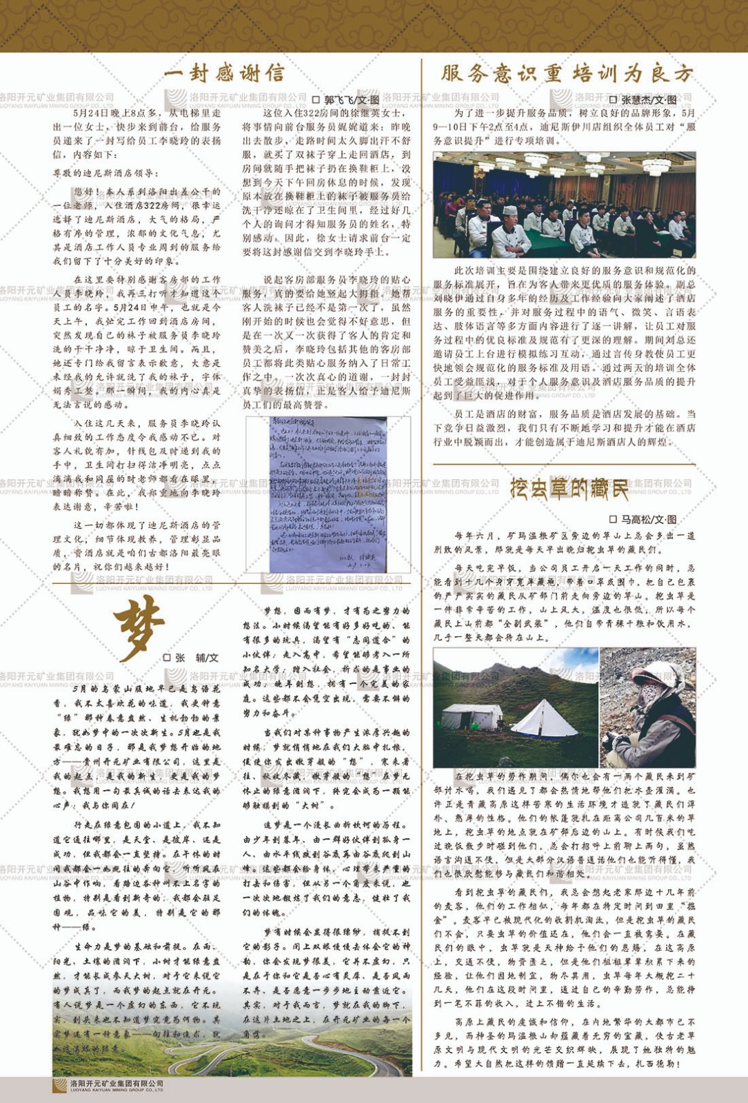 洛陽(yáng)開(kāi)元礦業(yè)集團(tuán)有限公司簡(jiǎn)介洛陽(yáng)開(kāi)元礦業(yè)集團(tuán)有限公司,始成立于2006年,位于洛陽(yáng)市開(kāi)元大道269號(hào)。集團(tuán)旗下共有五余家全資子公司,業(yè)務(wù)涉及有色金屬礦山開(kāi)發(fā)、礦產(chǎn)品購(gòu)銷(xiāo)與進(jìn)出口貿(mào)易、房地產(chǎn)開(kāi)發(fā)、文化藝術(shù)、企業(yè)管理與咨詢(xún)、資本投資等多個(gè)領(lǐng)域。民建河南省委委員、民建河南省委企業(yè)委副主任、民建洛陽(yáng)市委委員、企業(yè)委主任、洛陽(yáng)民建企業(yè)家協(xié)會(huì)會(huì)長(zhǎng)許明月是公司創(chuàng)始人,現(xiàn)任洛陽(yáng)開(kāi)元礦業(yè)集團(tuán)有限公司董事長(zhǎng)。在礦業(yè)領(lǐng)域,洛陽(yáng)開(kāi)元礦業(yè)集團(tuán)擁有多家實(shí)力雄厚的子公司:貴州開(kāi)元礦業(yè)有限公司探、采礦權(quán)面積共11.33平方公里;興??h銅鑫礦業(yè)有限公司探礦權(quán)面積8.76平方公里,礦山資源潛力巨大;2021年,開(kāi)元集團(tuán)與盧氏中科礦業(yè)有限公司開(kāi)展戰(zhàn)略合作。盧氏中科礦業(yè)有限公司專(zhuān)注于有色金屬的浮選、加工和銷(xiāo)售,擁有強(qiáng)大的技術(shù)支撐平臺(tái),是集探、采、選、冶、研為一體的中大型綜合礦業(yè)企業(yè)。目前,盧氏中科王家河1000噸選礦廠已成功投產(chǎn),雙河金礦、柳關(guān)欒盧鉛鋅礦相繼順利開(kāi)工,樓房銀礦與圪老灣鉛鋅礦的深部探礦重大突破,標(biāo)志著礦山版圖取得重大進(jìn)展,為開(kāi)元集團(tuán)后續(xù)發(fā)展奠定了堅(jiān)實(shí)基礎(chǔ)。在文化傳媒領(lǐng)域,洛陽(yáng)市明月美術(shù)館通過(guò)豐富多樣的藝術(shù)展覽、學(xué)術(shù)研討和公共教育活動(dòng),努力打造一個(gè)集展覽、交流、教育、研究為一體的綜合性藝術(shù)平臺(tái)。此外,在金融投資領(lǐng)域,開(kāi)元集團(tuán)旗下的北京明峰資本管理有限公司專(zhuān)注于投資具有高增長(zhǎng)潛力的優(yōu)秀企業(yè),特別是高科技、新能源、環(huán)保等新興產(chǎn)業(yè),為客戶(hù)提供個(gè)性化的資產(chǎn)配置服務(wù)。在做好企業(yè)經(jīng)營(yíng)的同時(shí),開(kāi)元集團(tuán)始終不忘企業(yè)的社會(huì)責(zé)任和家國(guó)情懷,以突出的愛(ài)心公益事跡,開(kāi)展了一系列公益慈善活動(dòng):“民建林”公益事業(yè)通過(guò)“思源基金”“幫幫公益”線上公益平臺(tái),與眾多愛(ài)心人士籌措資金20余萬(wàn)元;資助541名貧困大學(xué)生共計(jì)270余萬(wàn)元,推進(jìn)“數(shù)字助力——河南AI人才培養(yǎng)”;捐款10萬(wàn)元,馳援京津冀、黑龍江洪水地質(zhì)災(zāi)害……公司于2017年底被洛陽(yáng)市慈善總會(huì)評(píng)為“洛陽(yáng)慈善風(fēng)云榜——十大愛(ài)心集體”。洛陽(yáng)開(kāi)元礦業(yè)集團(tuán)有限公司秉承持續(xù)發(fā)展理念,憑借多年來(lái)良好的企業(yè)信譽(yù)與經(jīng)營(yíng)業(yè)績(jī),與全國(guó)多家企業(yè)建立了良好合作關(guān)系,受到社會(huì)各界的一致好評(píng),多次榮獲“納稅標(biāo)兵”“先進(jìn)企業(yè)”“招商引資模范企業(yè)”等榮譽(yù)稱(chēng)號(hào)。回望來(lái)時(shí)路,開(kāi)元人勠力同心,以“闖”的精神和“創(chuàng)”的勁頭,一路披荊斬棘,踏過(guò)千山萬(wàn)水;展望新未來(lái),開(kāi)元人凝心聚力,不執(zhí)于“舊”,無(wú)畏于“新”,秉承“勇于跨越,追求卓越”的企業(yè)精神,乘著國(guó)家高質(zhì)量發(fā)展新征程的東風(fēng),跨過(guò)高山,越過(guò)大海,向著集團(tuán)多元化、國(guó)際化的目標(biāo),逐夢(mèng)遠(yuǎn)航,跨越前行!